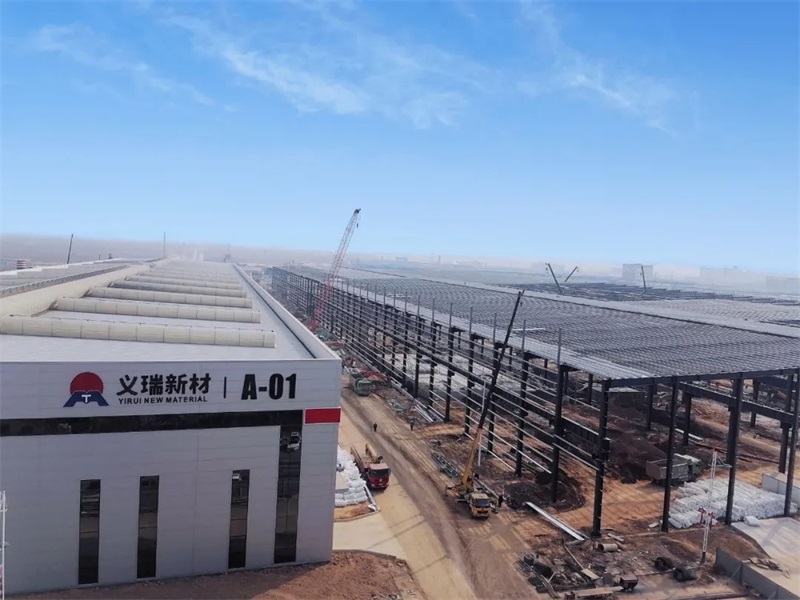 施工車輛穿梭奔忙,一跨跨車間正在拔節(jié)生長……義瑞新材的項目建設(shè)正在加速推進。